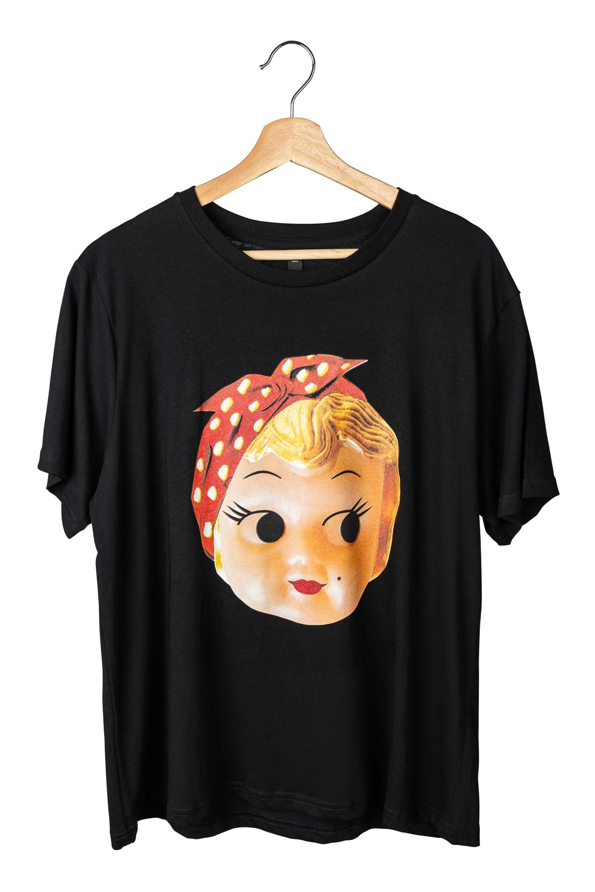 Rosie the Riveter iconic kewpie design screen-printed on a mid weight 180 GSM 100% combed cotton.